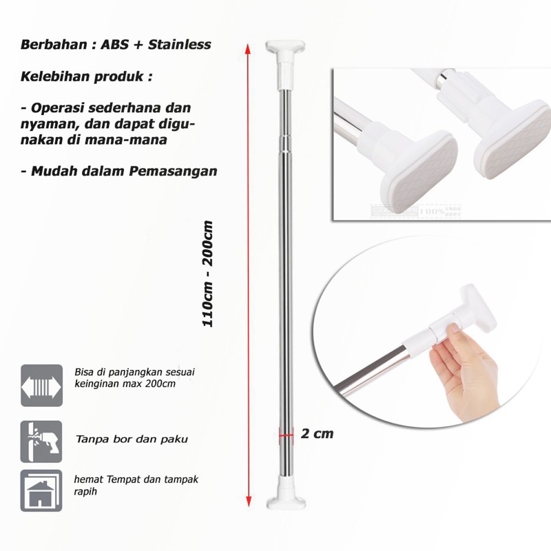 tiang gantungan flexible tanpa paku/ tiang horden / tiang jemuran / tiang serbaguna kamar mandi toilet dapur jendela gordeng/ pipa gorden fleksibel/ pipa ajaib stainles/ tiang fleksibel stainles, tongkat fleksibel stainles, pipa stainles ajaibo